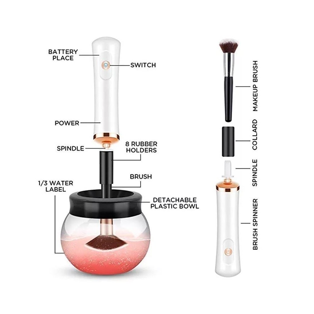 Η Ηλεκτρική Συσκευή Καθαρισμού Πινέλων Μακιγιάζ διαθέτει μια περιστρεφόμενη λειτουργία η οποία καθαρίζει τα πινέλα μακιγιάζ μέσα σε λίγα μόλις δευτερόλεπτα.
