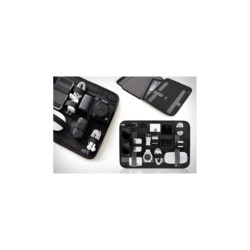 The GRID-IT! organization system is a proprietary patent pending object retention system. A unique weave of rubberized elastic bands made specifically to hold personal objects firmly in place.