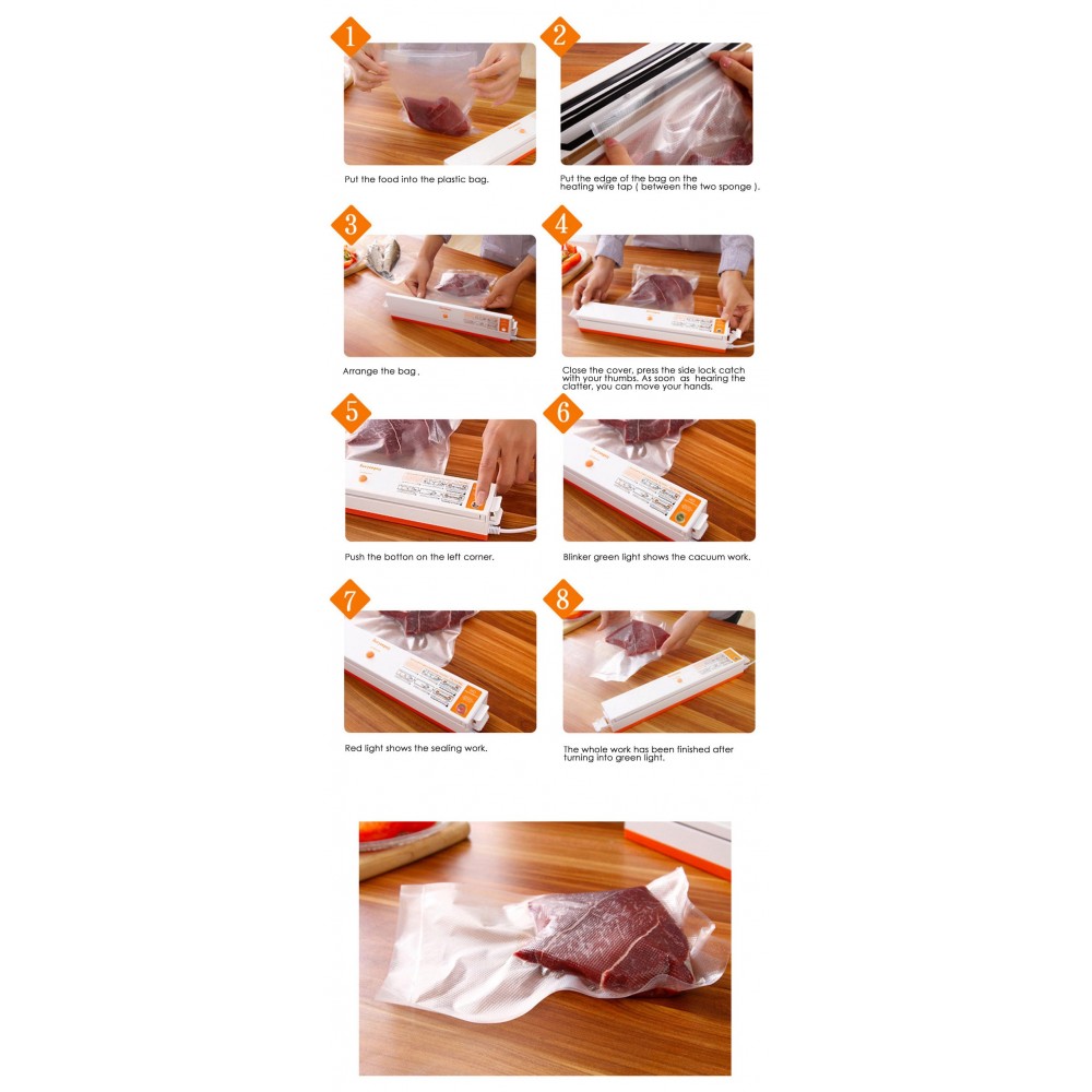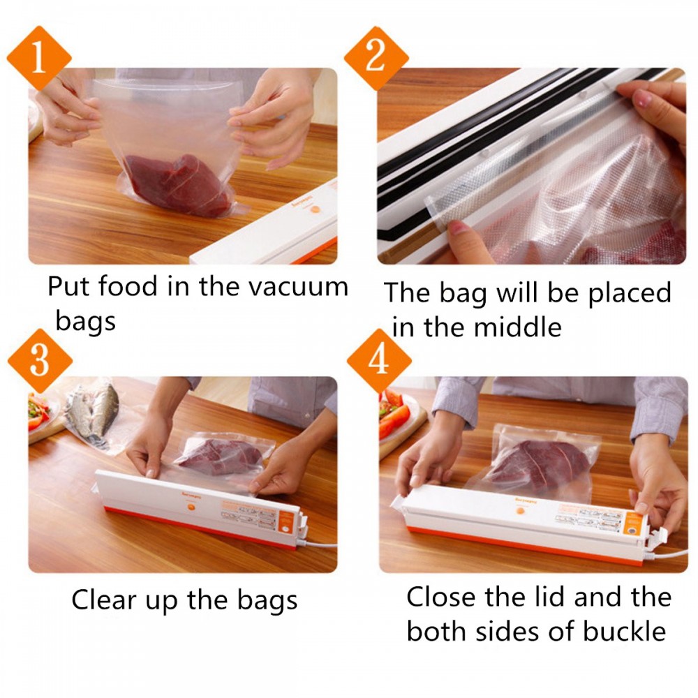 - Τρόφιμα με υγρασία όπως κρέας, ψάρι, λαχανικά και ούτω καθεξής, σκουπίστε την υγρασία με μια πετσέτα ή ιστούς ή τυλίξτε την με μια πλαστική σακούλα μίας χρήσεως πριν την κενού.
