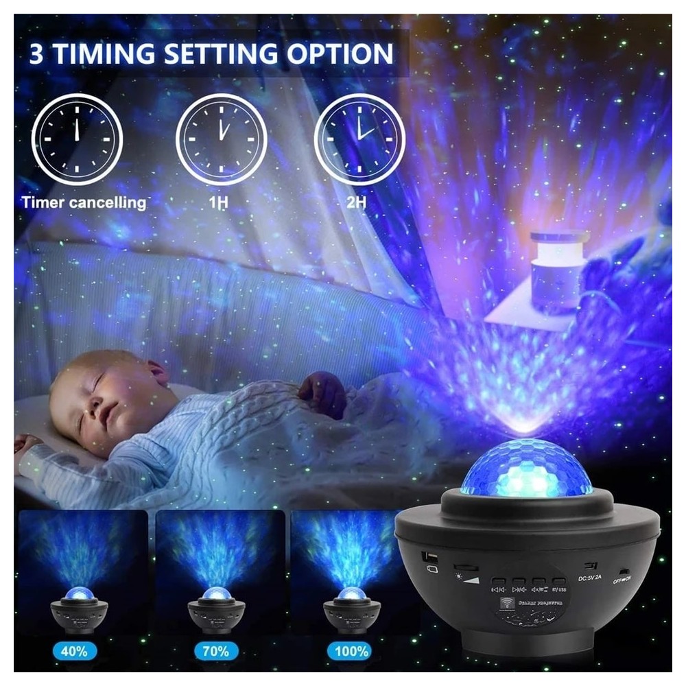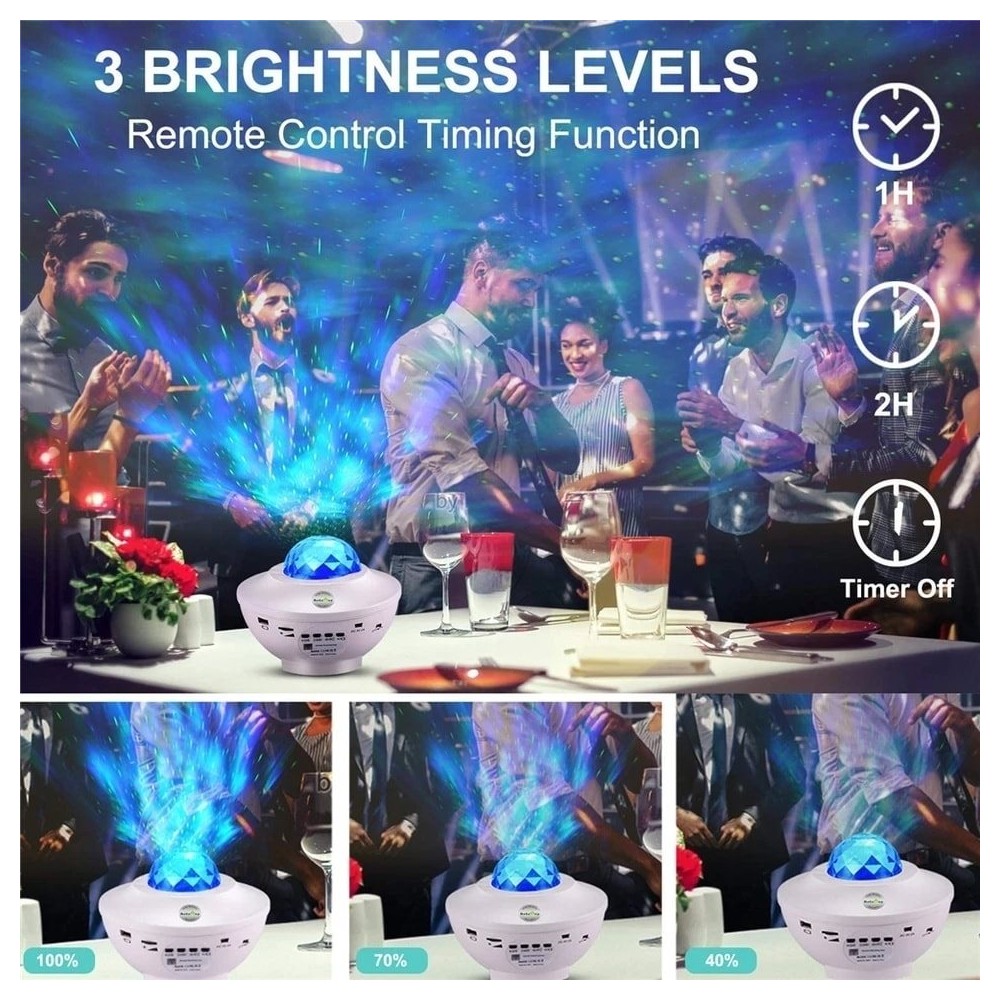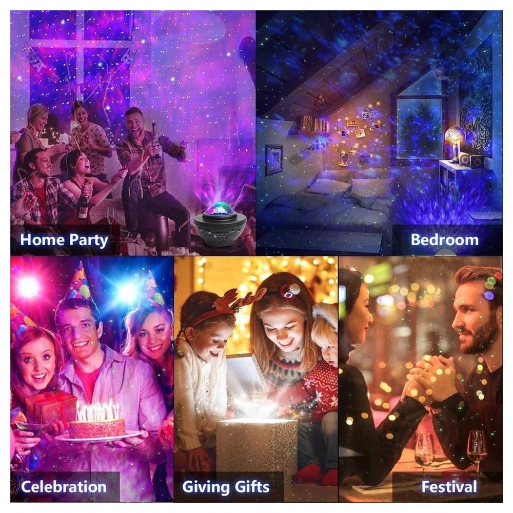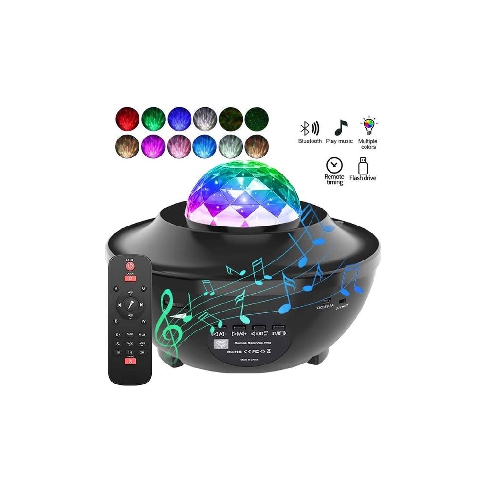 Δεκάδες συνδυασμοί χρωμάτων και ποικιλία λειτουργιών. Σε κάνει να νιώθεις σαν να ξαπλώνεις στον ωκεανό, κάτω από τα αστέρια, αναπτύσσοντας την παιδική φαντασία. Το τηλεχειριστήριο μπορεί να ελέγξει την αναπαραγωγή μουσικής, τα χρώματα φόντου LED, Starry / Galaxy. Ρυθμίστε τη φωτεινότητα, την ταχύτητα αλλαγής, ενεργοποιήστε / απενεργοποιήστε ελεύθερα τη λάμπα ή τη μουσική. Η λειτουργία ενεργοποίησης ήχου επιτρέπει την προβολή ή την αλλαγή της προβολής ανάλογα με το ρυθμό της μουσικής.