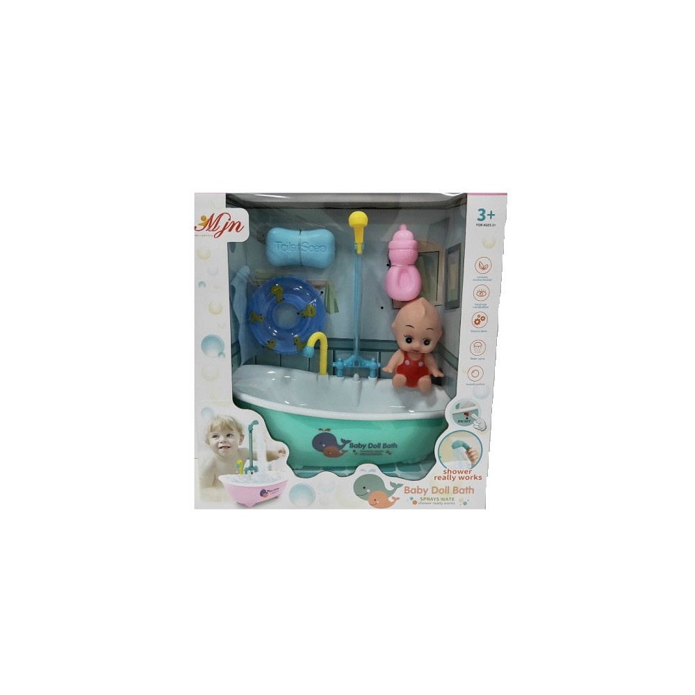 Ολοκληρωμένο σετ φροντίδας μωρού με κούκλα, μπανιέρα και όλα τα απαραίτητα αξεσουάρ για να κάνεις μπάνιο και να περιποιηθείς το μωράκι σου.