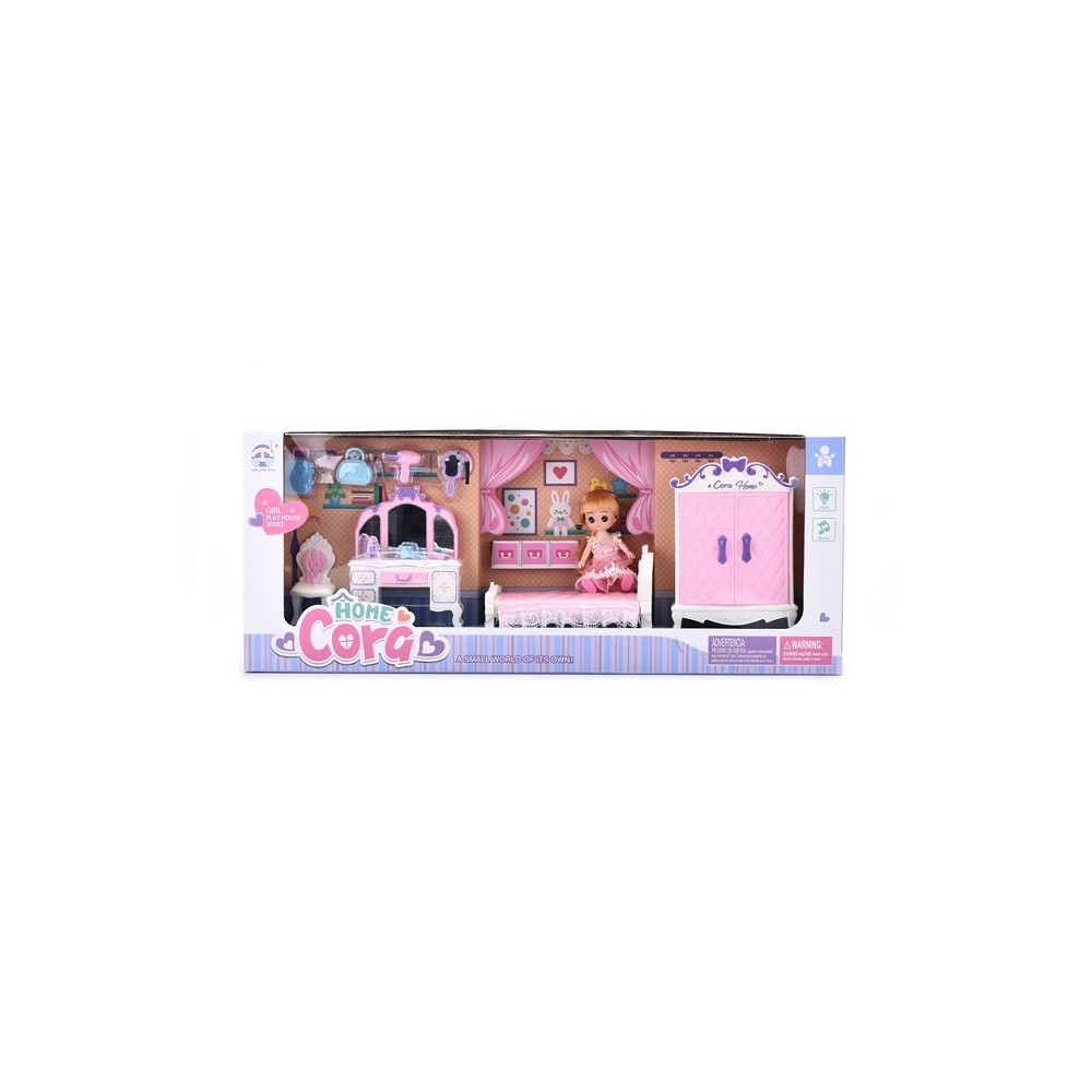 Κουκλόσπιτο – δωμάτιο σπιτιού κρεβατοκάμαρα, με κούκλα. Παίξε με τις φίλες σου ντύνοντας τις κούκλες σας με τα υπέροχα αξεσουάρ που θα βρείτε μέσα στην ντουλάπα!