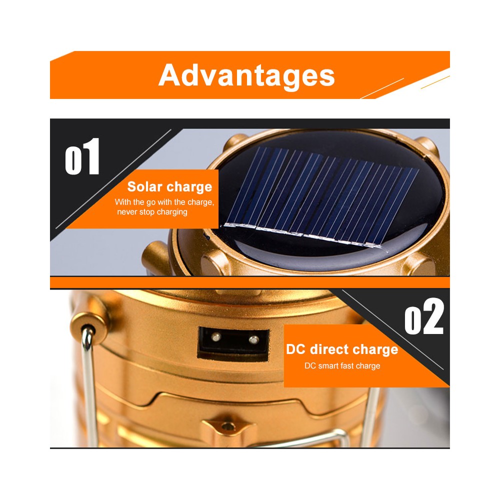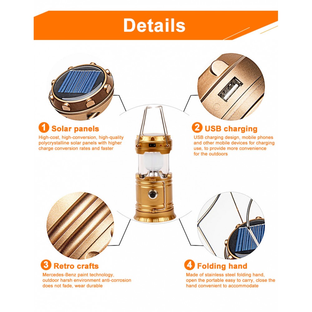 Φορητό ηλιακό φανάρι - φακός LED για κάμπινγκ 300Lm