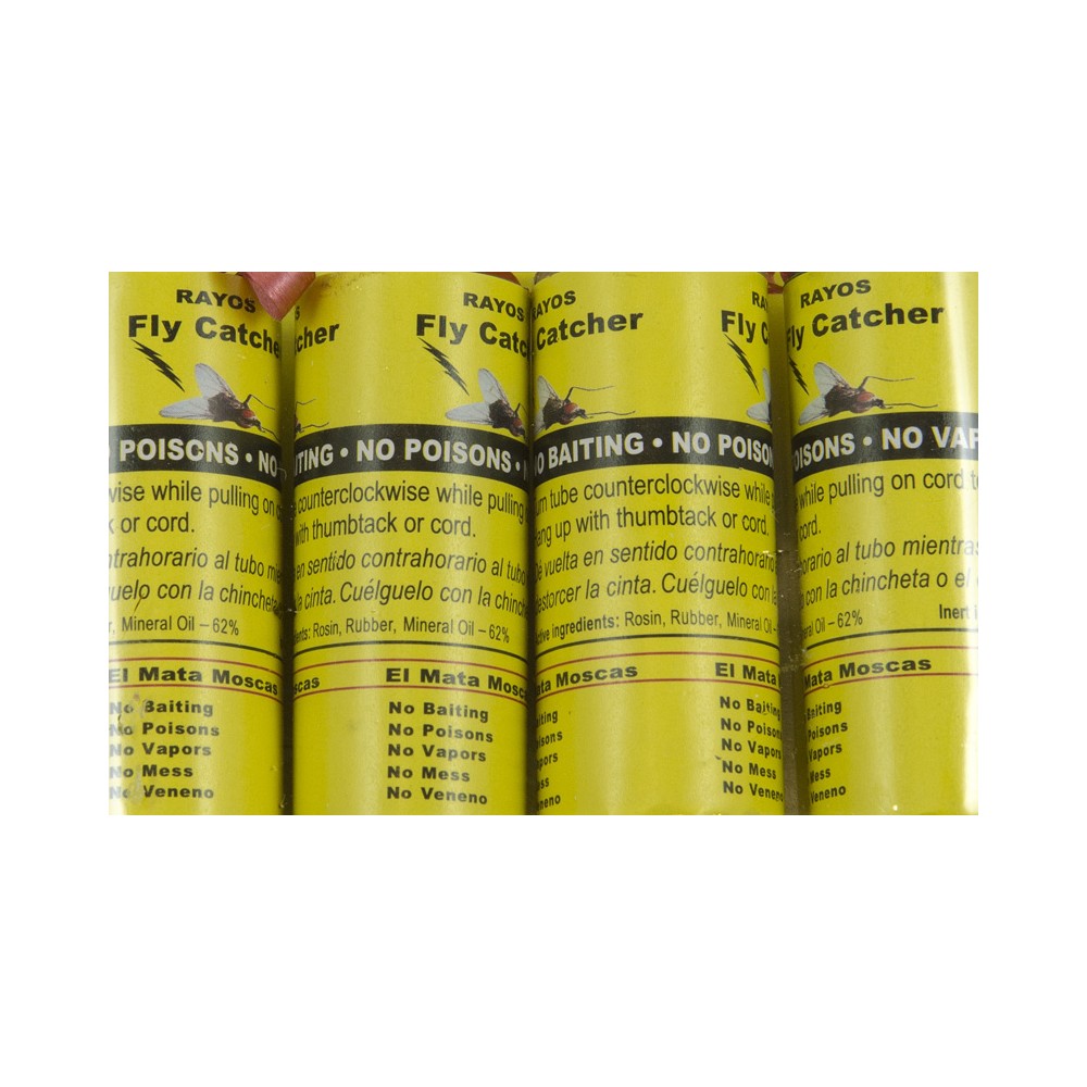 Πως λειτουργεί; Ξεδιπλώνετε την παγίδα, τραβώντας το λουράκι, και από μέσα θα βγει μία ταινία κόλλας την οποία κρεμάτε όπου θέλετε. Οι μύγες θα πάνε στην παγίδα και θα κολλήσουν πάνω της. Μόλις έχουν κολλήσει όλες οι μύγες, ξεκρεμάτε την παγίδα και την πετάτε!